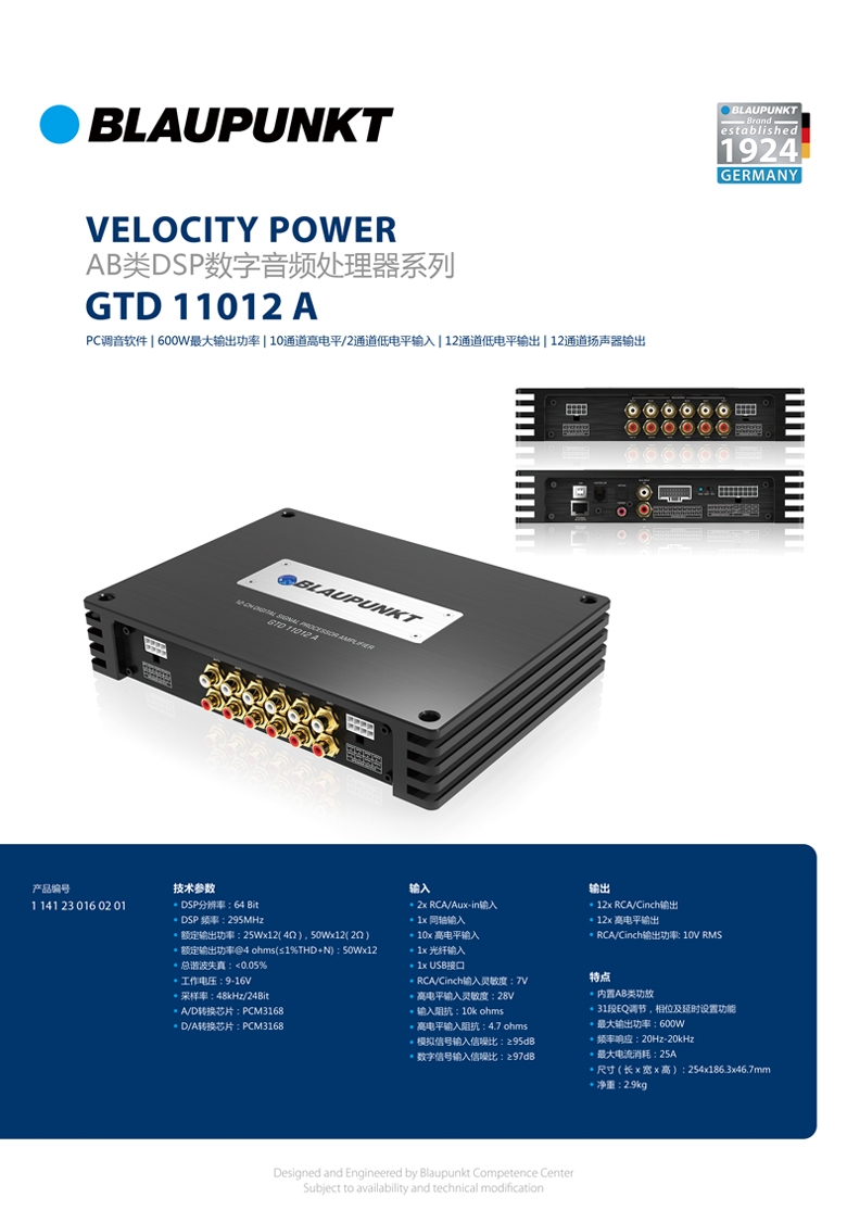 德國藍寶(BLAUPUNKT)12路DSP功放 GTD 11012 A